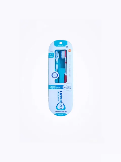 مسواک سنسوداین pronamel اورجینال بسته دو عددی. بسیار با کیفیت و از بهترین مسواک های سنسوداین. محافظ مینای دندان و جلوگیری کننده از سایش دندان ها. تمیزکنندگی عالی و ارگونومی مناسب. بسته بندی plastic free و دوست دار محیط زیست.